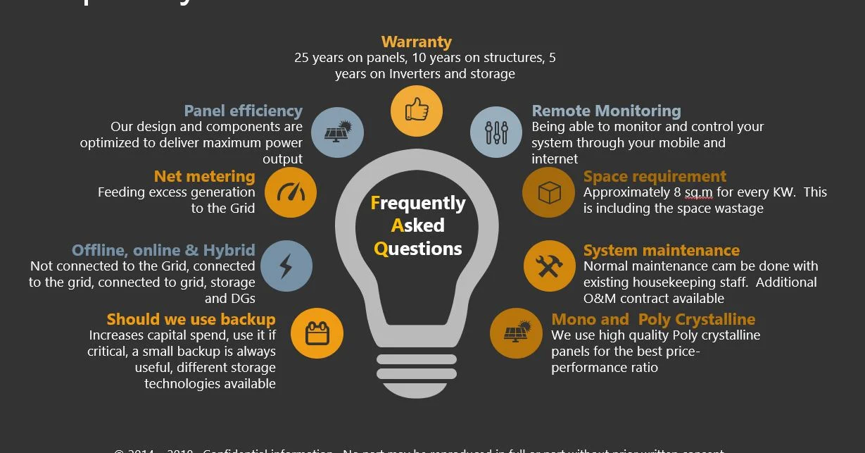 There is non-stop progress in Solar and Power Technology, Financing options and Govt side policy on customs duty, tax benefit and net metering.